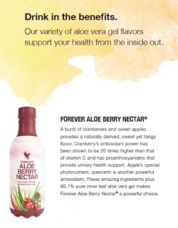 These amazing ingredients, plus 90.7% pure inner leaf aloe vera gel, makes Forever Aloe Berry Nectar a powerful choice. Warning If you are pregnant, breastfeeding, planning pregnancy, taking any medications or are under medical supervision, please consult a doctor or healthcare professional before use.