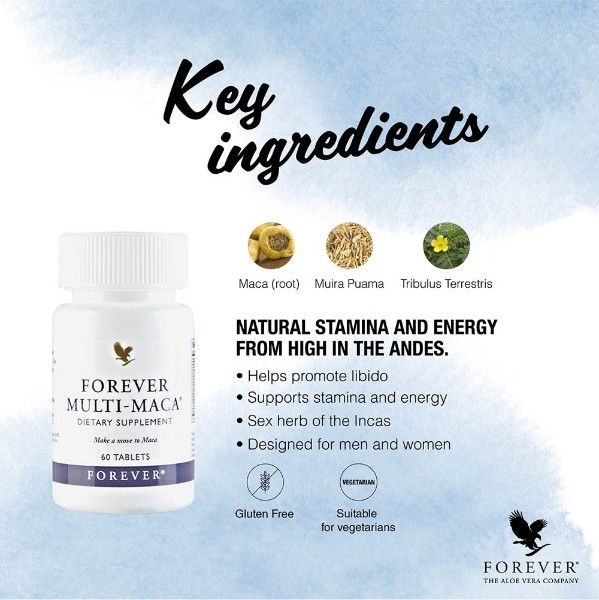 Forever Multi-Maca features an exclusive blend of Maca and other natural ingredients to encourage a relaxed, positive mood.