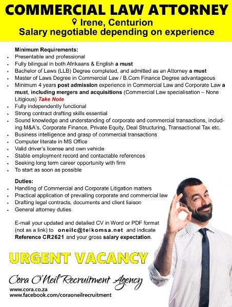 -Minimum 4 years post admission experience in Commercial Law and Corporate Law a must, including mergers and acquisitions (Commercial Law specialisation – None Litigious)